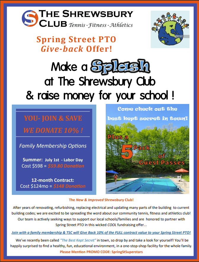 The Shrewsbury Club has been an amazing support to Spring Street School! They graciously donate to our silent auction, run our Fun Fair obstacle course, and are always willing to contribute to our events when asked!